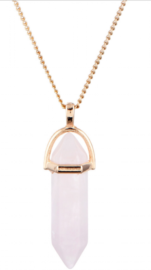 Collier pendentif serti d'un quartz rose