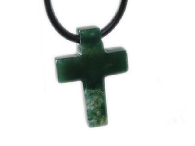 Pendentif Croix Agate-Mousse 25 x 18mm